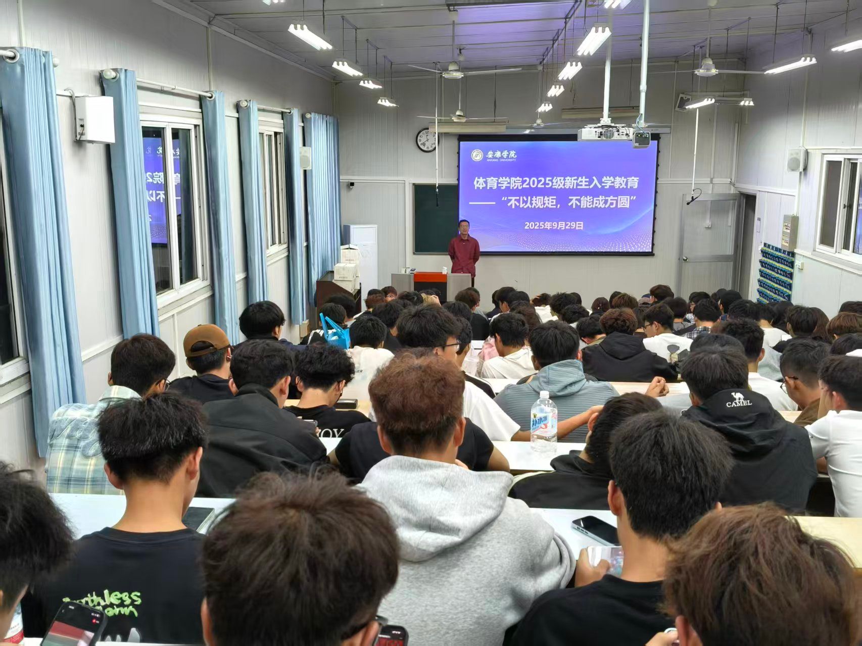 为牢固树立2025级学生规则意识与纪律观念,9月29日晚,体育学院在6408教室组织开展“不以规矩,不能成方圆”新生入学教育主题班会。本次班会由辅导员陆传梓主持,大一年级全体学生参加,围绕《学生手册》展开系统学习,引导学生系好大学阶段“第一粒扣子”。