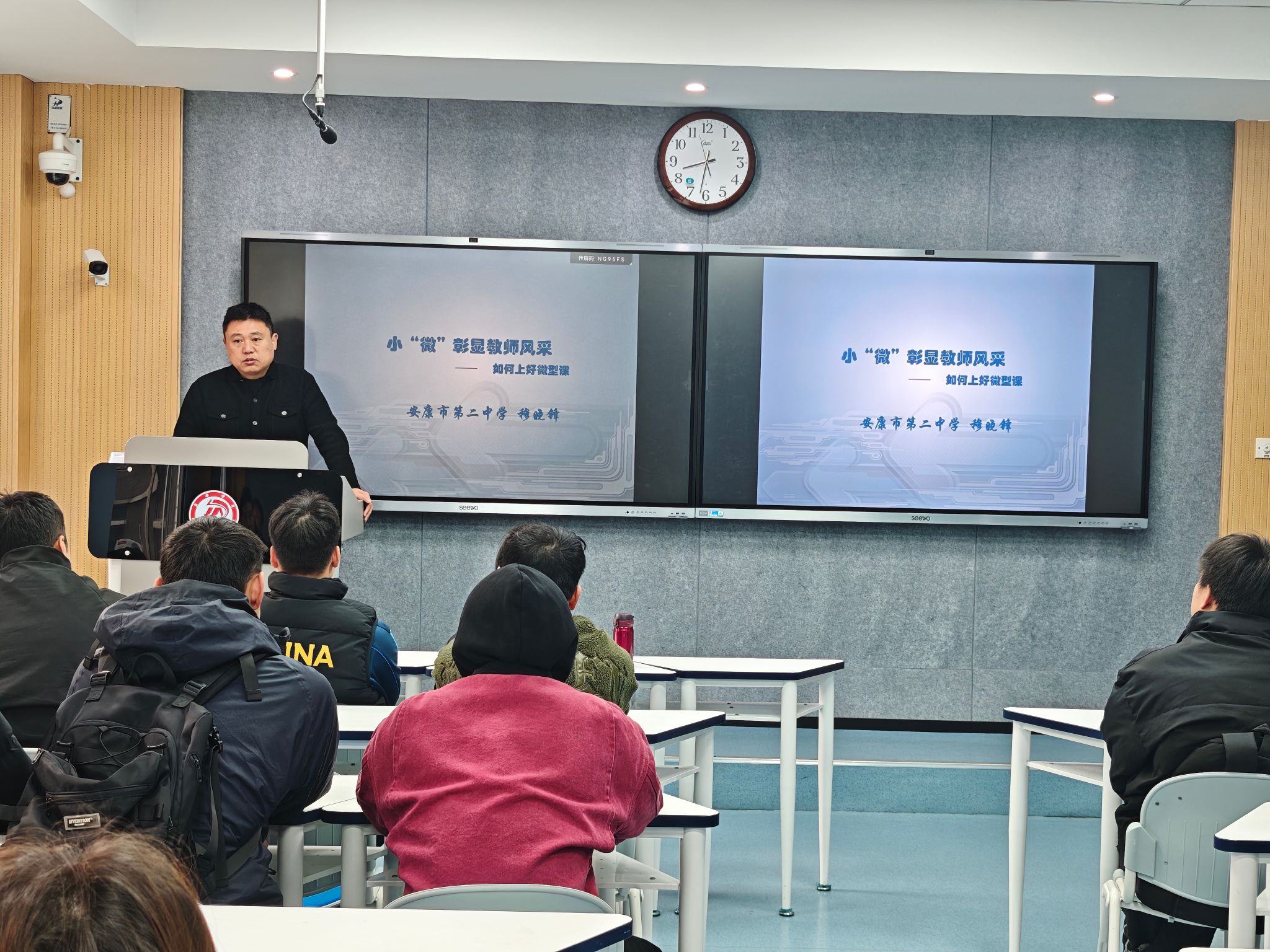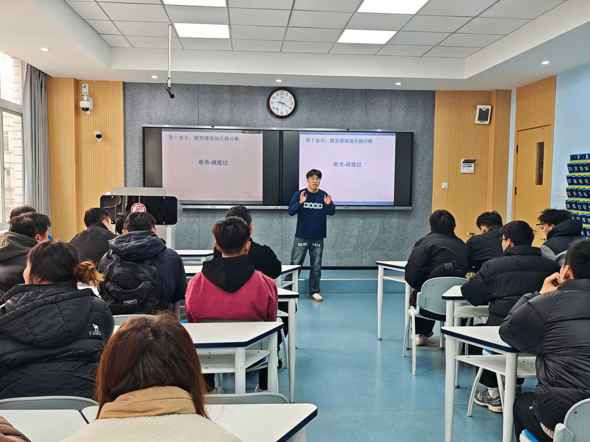 示范课后,穆晓锋老师从大赛评委的视角,对前两场演示作了精准而深刻的点评。他不仅剖析了两位教师在教学环节设计、课堂节奏把控等方面的独到之处,更结合自身经验,分享了在不同学段授课时如何有效把握重点、展现教师风采的宝贵心得,为同学们提供了兼具理论高度与实践深度的指导。