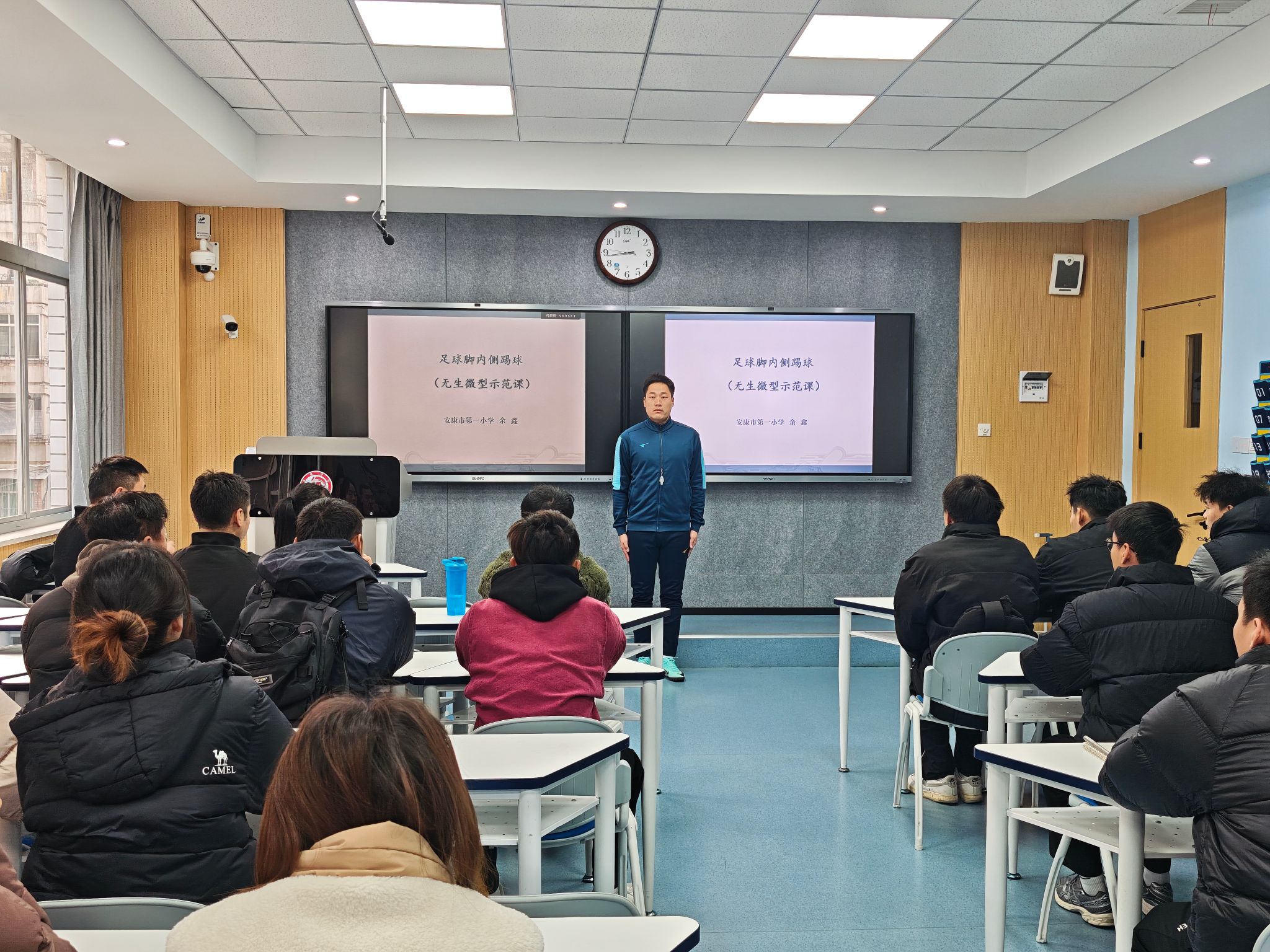 为精准对接师范生教育教学能力大赛要求,切实提升体育教育专业学生的教学实践能力。11月29日,我院特邀安康市第二中学穆晓锋、安康市第一小学余鑫、安康市初级中学卜中燕三位教学经验丰富的一线优秀教师来校,为同学们进行现场示范与精准指导。