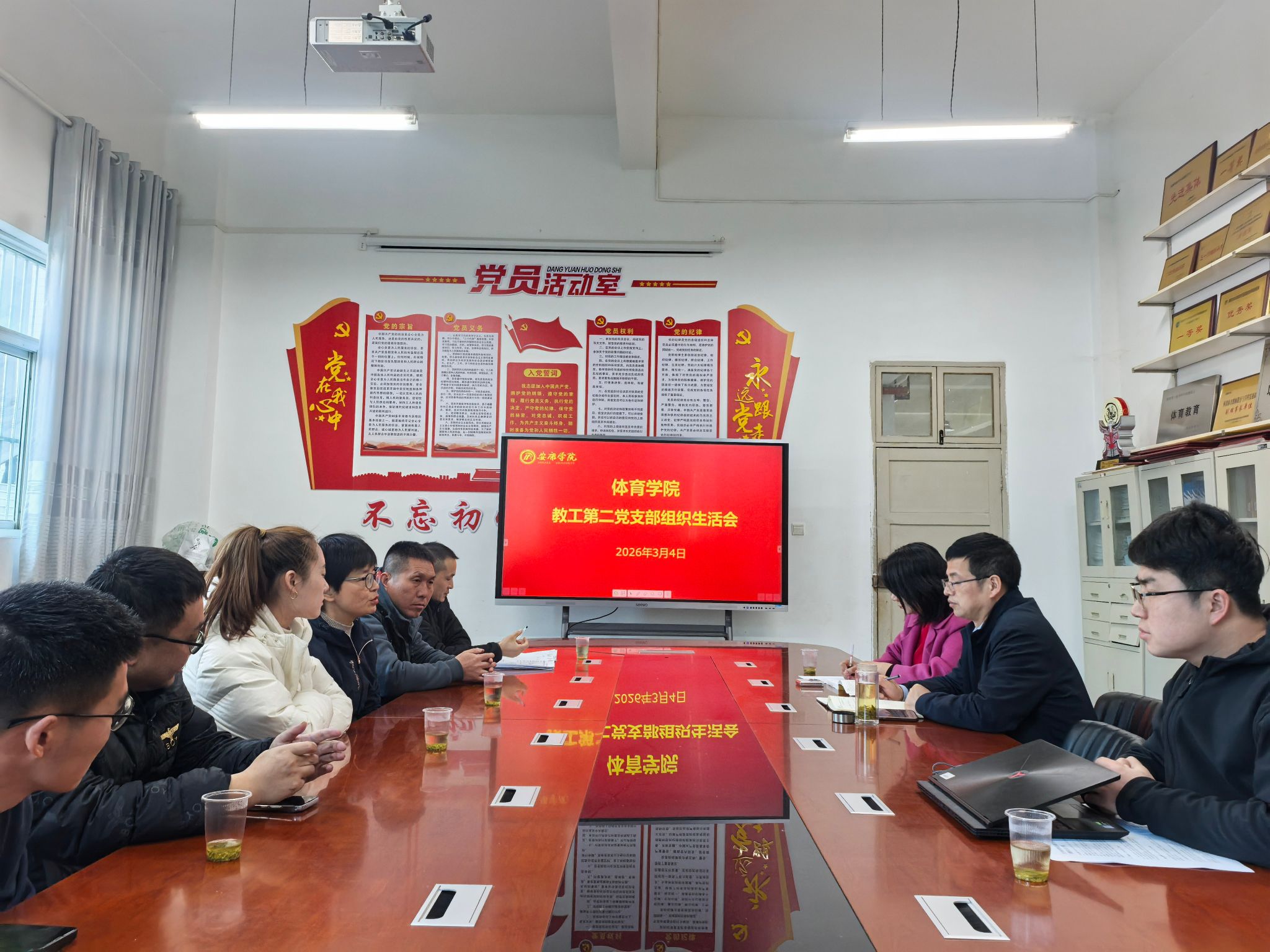 为深入学习贯彻党的创新理论,严格落实党内政治生活制度,不断加强支部政治建设、思想建设和作风建设,2026年3月4日下午,体育学院教工第二党支部召开专题组织生活会。会议由第二党支部书记王俊杰主持,支部全体党员参加会议,体育学院党支部书记韩晔以普通党员身份出席会议并作总结讲话。