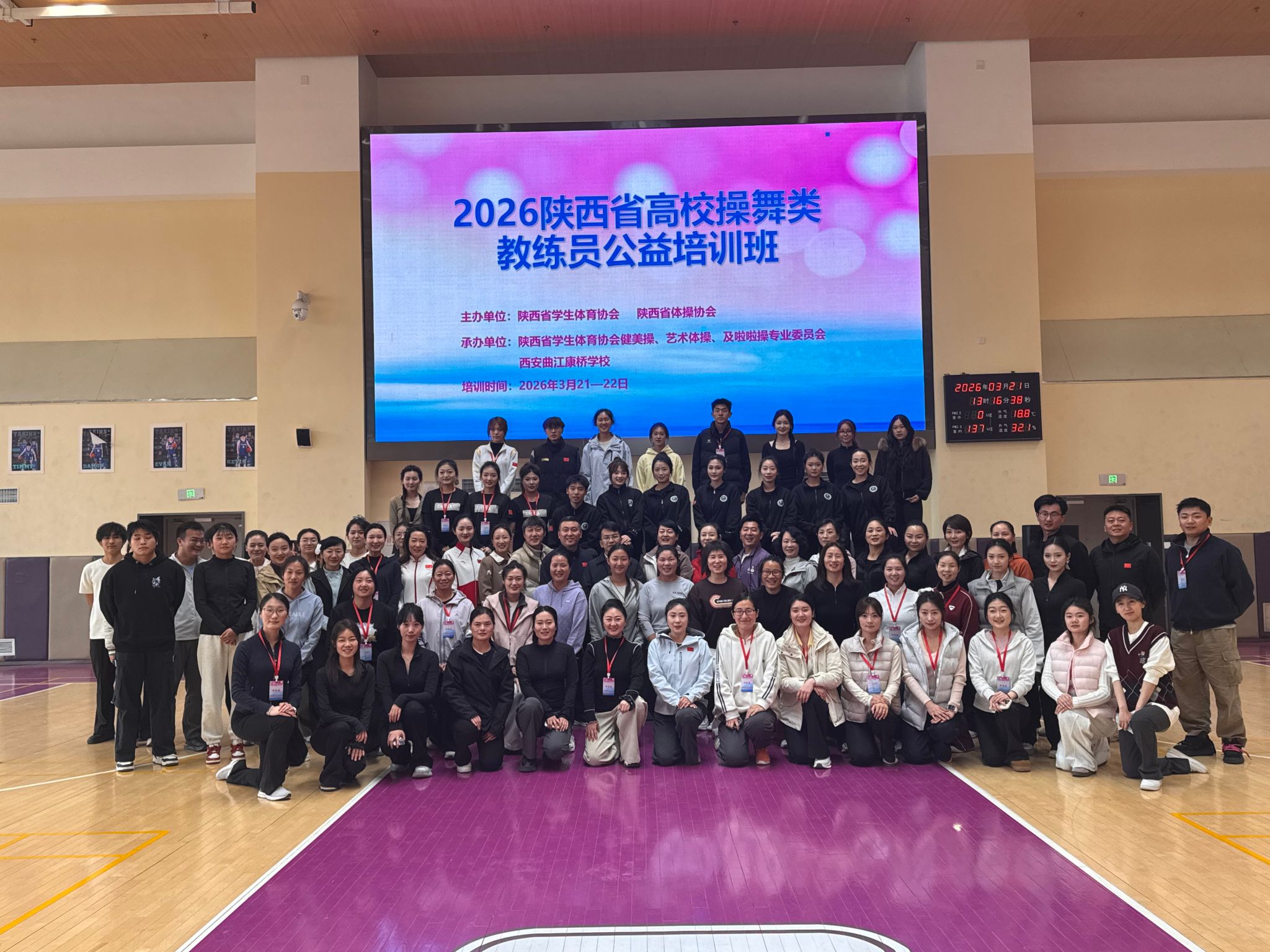 为深入贯彻"健康第一"教育理念,深化体教融合,强化高校操舞类教练员队伍专业化建设,3月21日—22日,2026年陕西省高校操舞类教练员公益培训班在西安曲江康桥国际学校成功举办。我院青年教师邢轩硕、关惠尹带领6名健美操队队员参加了本次培训。